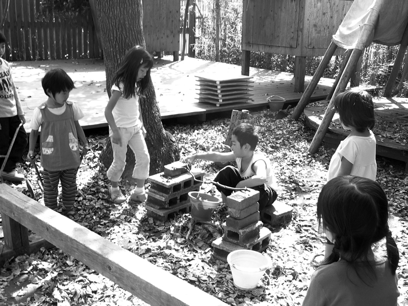 泥をこねておだんごづくり。川をほって水を流し、毎日ビショビショ泥だらけ。