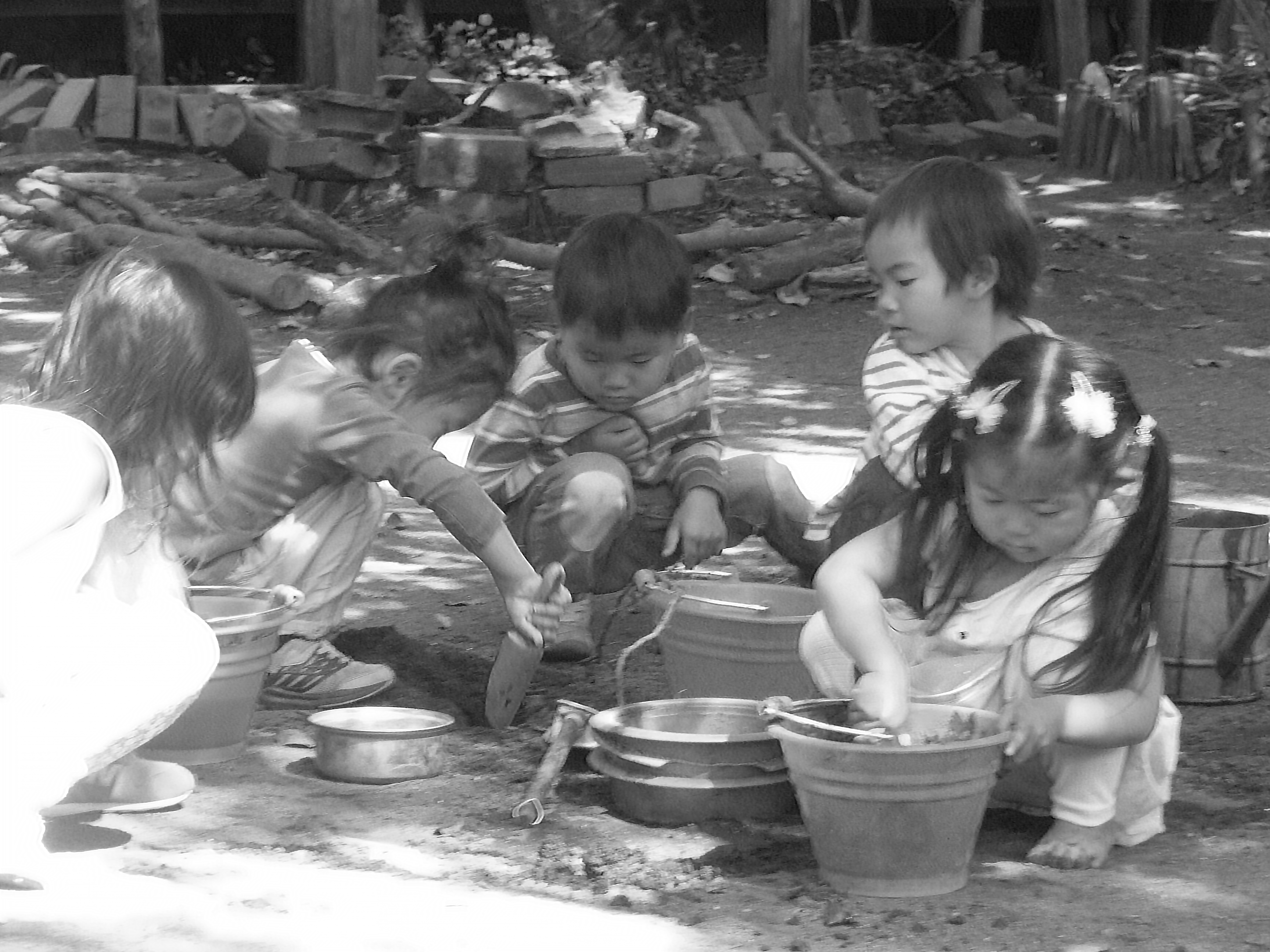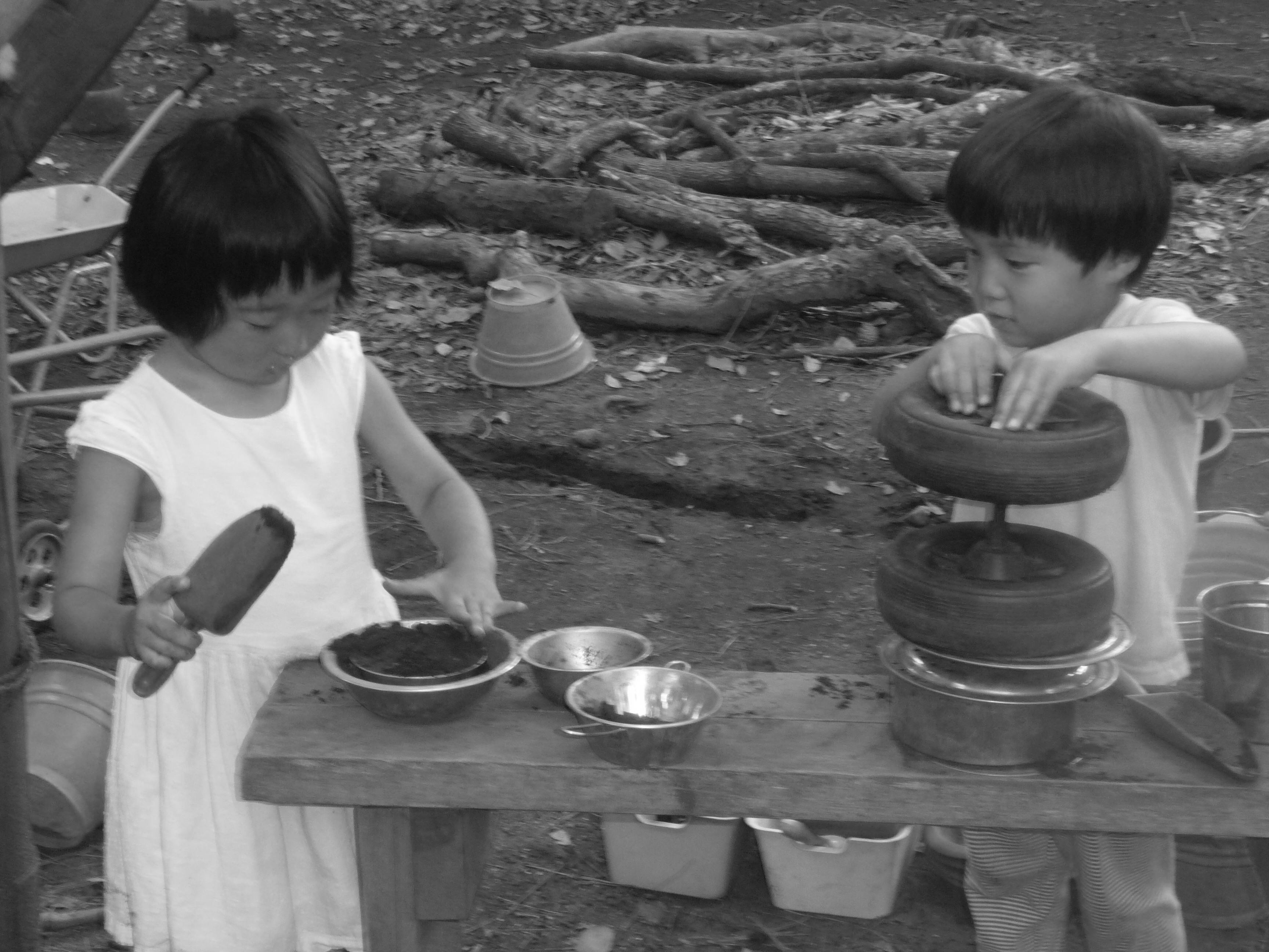 泥をこねておだんごづくり。川をほって水を流し、毎日ビショビショ泥だらけ。